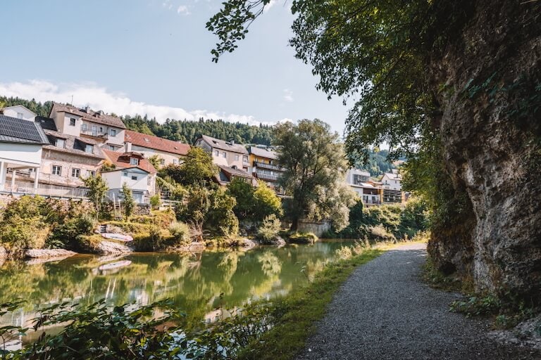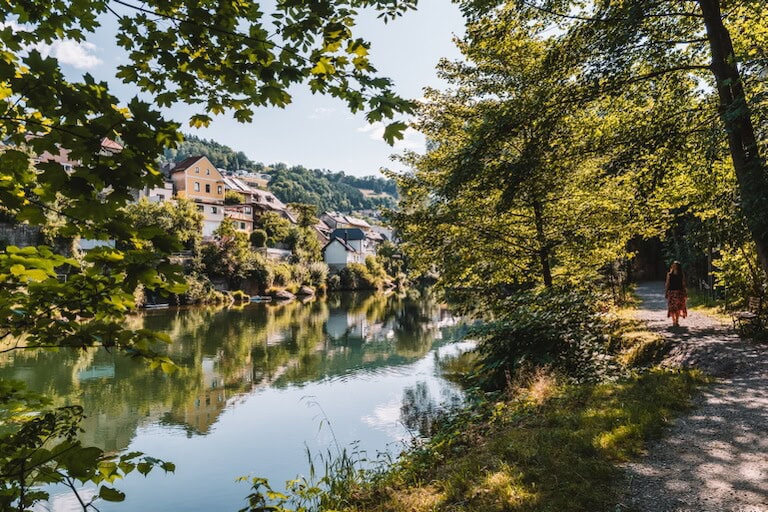 Bei deinem Spaziergang durch die Stadt wird dir sofort auffallen, wie herrlich grün Waidhofen ist. Mein absolutes Highlight, wenn wir schon von Stadtoasen sprechen, ist der unglaublich malerische Ybbsuferweg, der direkt unten am Flussufer vom Ybbsturm bis zur Florianibrücke führt. Das Wasser fließt hier so ruhig und ist klar wie Glas, ich wünschte ich hätte meine Badesachen dabei gehabt.