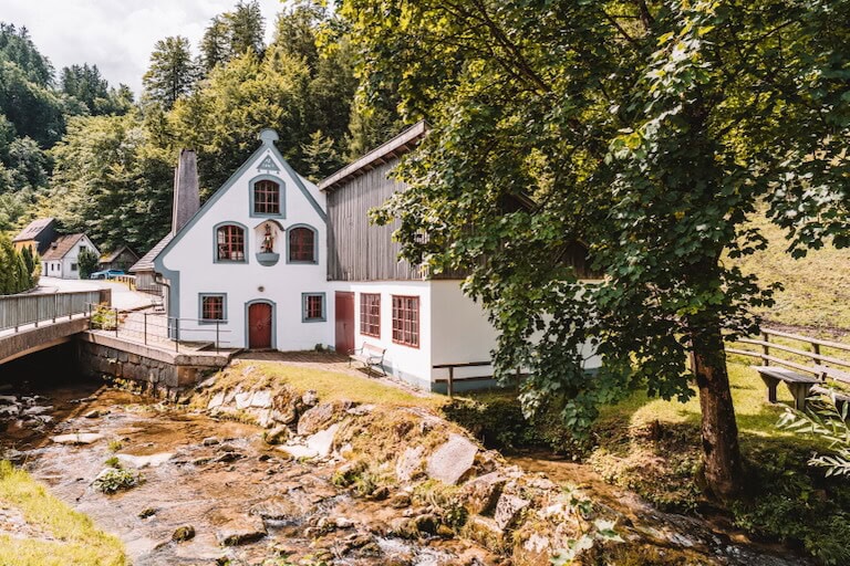 Immer entlang des gurgelnden Prollingbachs lässt es sich in idyllischer Natur wunderbar spazieren, viele Schilder entlang der Schmiedemeile vermitteln Wissen zur Schmiedekunst der Region. Besonders toll gestaltet ist der Platz bei der eisernen Erlebnisbrücke, die einem Regenbogen nachempfunden ist. Während eines Besuches im Museum FeRRUM – in der Welt des Eisens – erfährst du viel Interessantes über das traditionelle Handwerk des Eisenschmiedens.