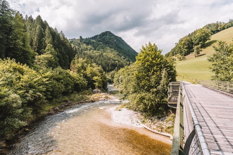 Der bekannteste Abschnitt führt auf 55 Kilometern von Waidhofen an der Ybbs nach Lunz am See, wo der zauberhafte Lunzer See zum Baden oder zu einer kleinen Bootstour einlädt. Ein toller Zwischenstopp ist das Örtchen Opponitz mit dem coolen Tunnel und dem gleich daneben liegenden Naturbadeplatz Ochsenloch.